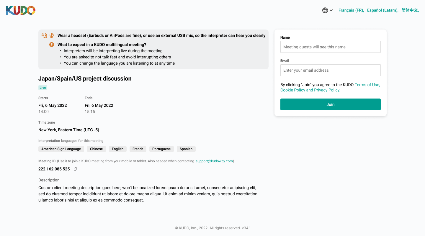 KUDO’s mission is to remove language barriers in virtual meetings, so it’s essential that every participant has a smooth experience, no matter what language they speak.
